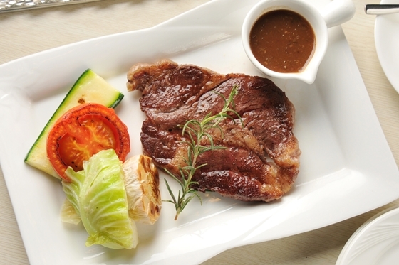 嚴選頂級肉品部位,大人氣的肋眼牛排,油花均勻在爐烤過程中,中心肋眼油脂逐漸融化,竄出一股誘人的香氣,灑落迷迭香與紅酒醬汁,讓人深深迷醉。