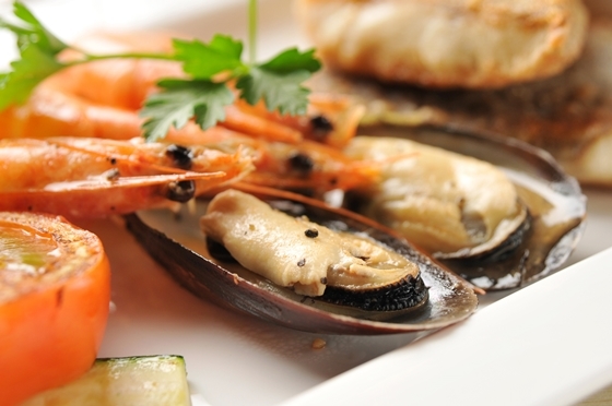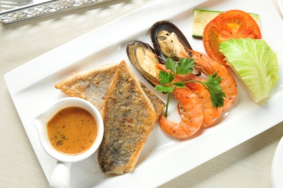 精緻火烤海鮮,將原始鮮甜逼出,搭配些許菜蔬與特調醬汁,甜美至極。
